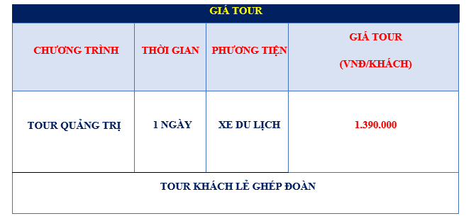 Lịch trình chi tiết tour TOUR DMZ QUẢNG TRỊ - MƯA ĐỎ -HÀNH TRÌNH KÝ ỨC